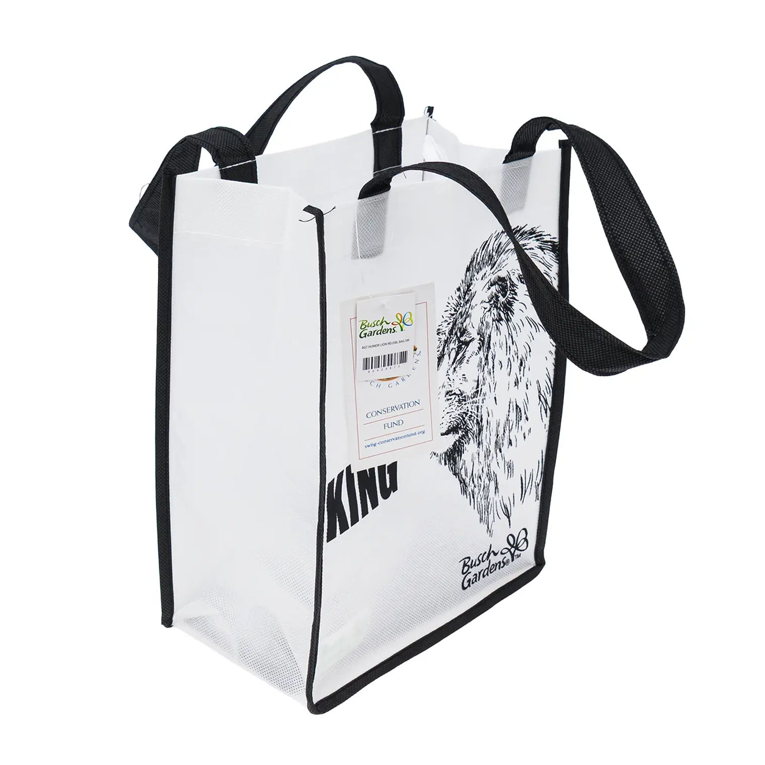 Every day becomes a small safari with the Busch Gardens King tote by your side. With its striking lion artwork and sturdy reusable build, this compact 10 x 8.5" bag keeps your must-have items organized without weighing you down. It's the perfect size for lunch, souvenirs, or everyday grab-and-go items. Carry it along and feel a bit of wild pride with every step—your own personal slice of the savanna woven into your routine.