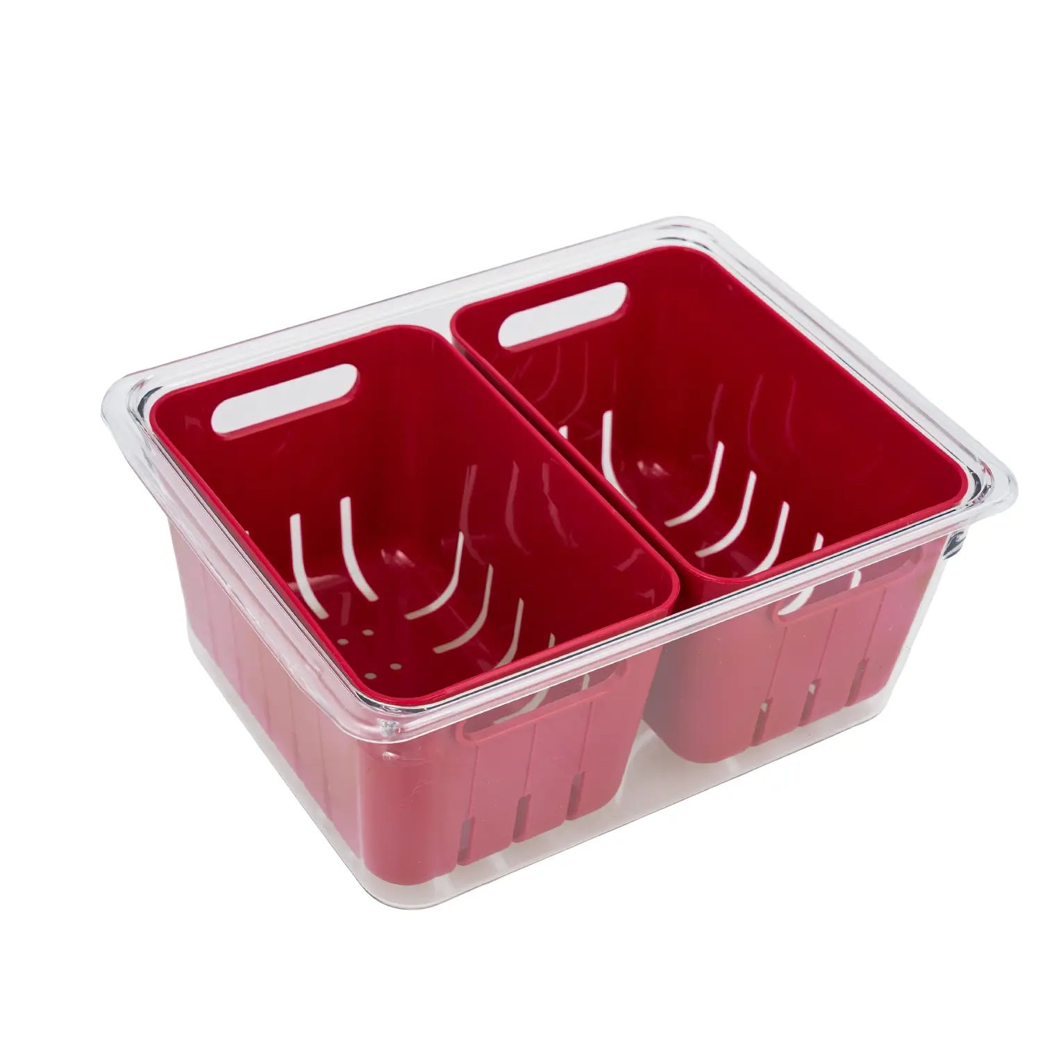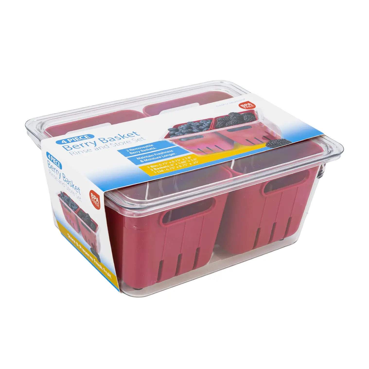 Perfect for retail shelves, the Berry Basket Rinse and Store 4-Piece Set combines rinsing, draining, and storage in one convenient design. Consumers can wash berries with ease, let water drain away, and store produce neatly in the fridge. The reusable baskets promote better food care and less waste. Ideal for home organization and kitchen storage sections, this product offers strong everyday appeal for modern households.