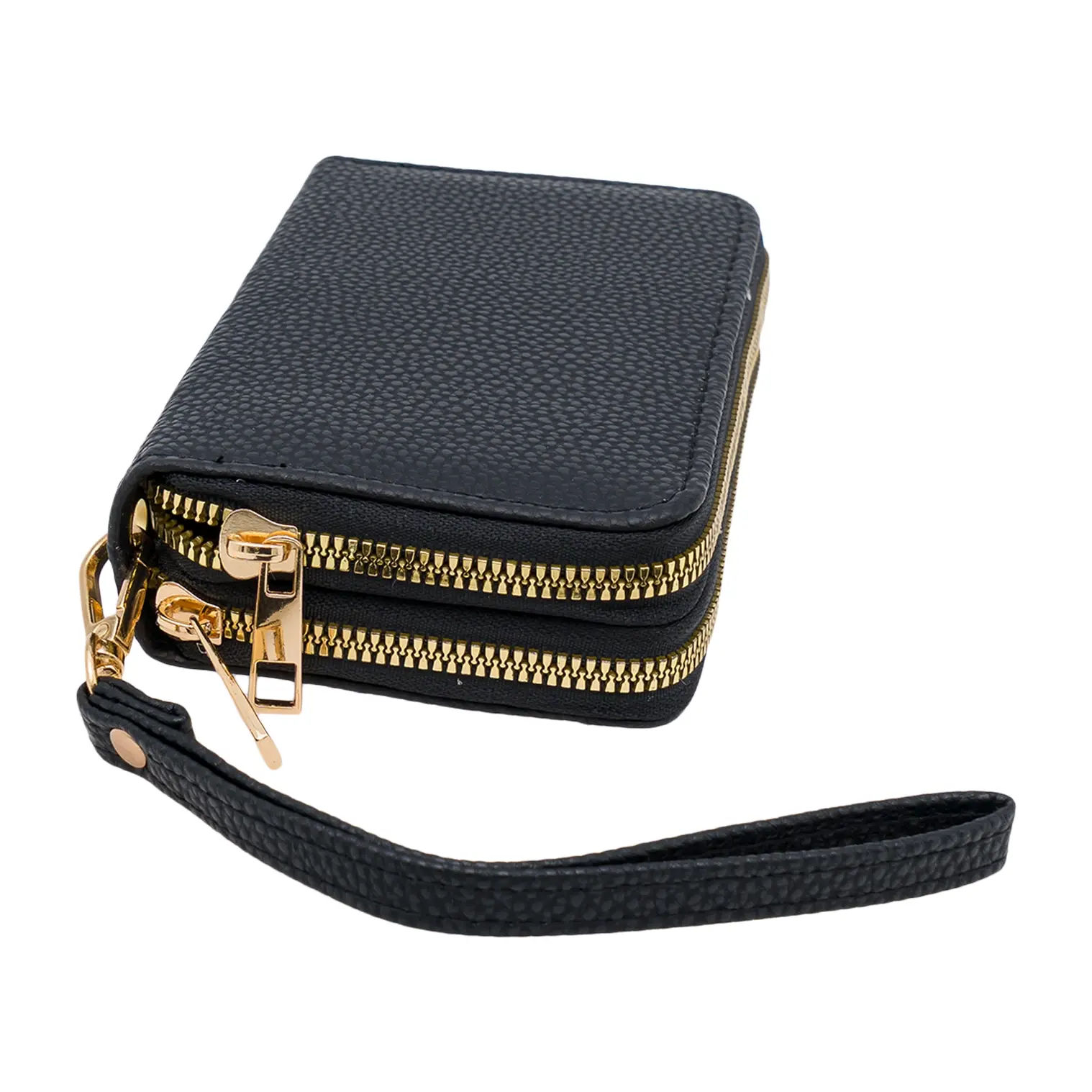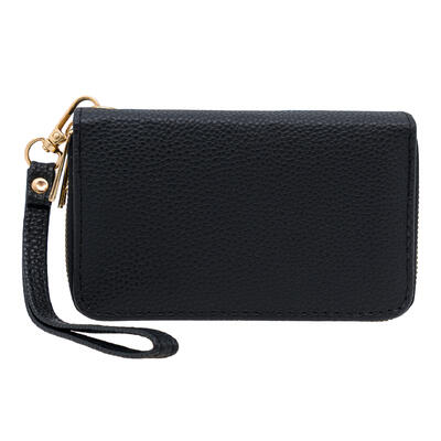Double Zip Wallet, Black, Compact & Stylish