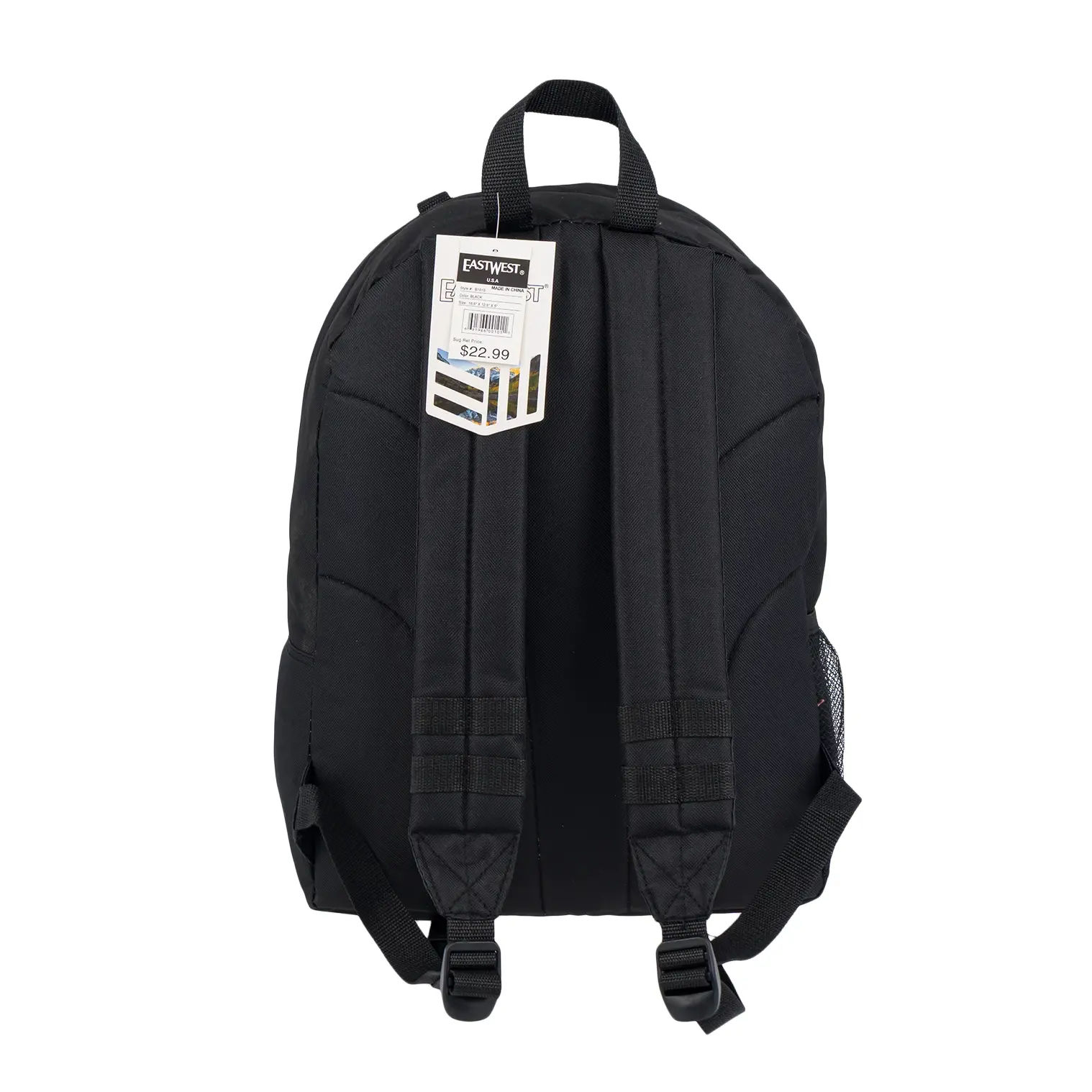 Backpack with Mesh Water Bottle Holder, Black, 16.5" Durable Everyday Bag