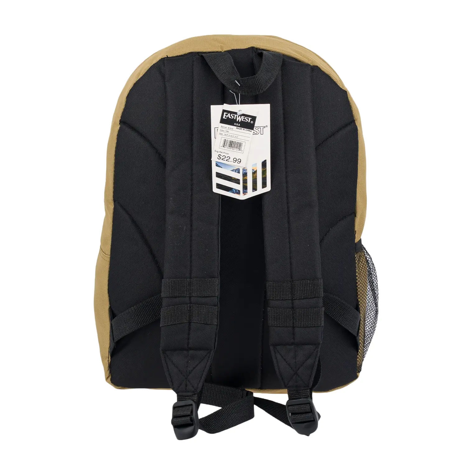 Backpack with Mesh Water Bottle Holder, Tan, 16.5" Durable Everyday Bag