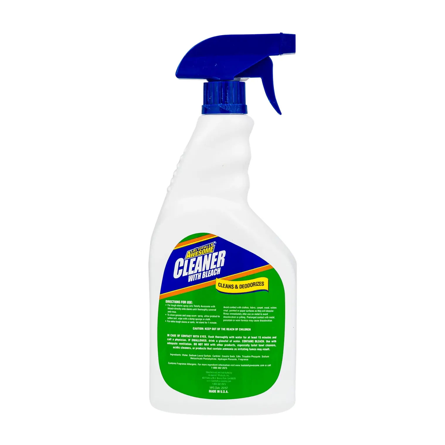 LA's Totally Awesome Cleaner with Bleach removes soap scum, grease, and tough stains.