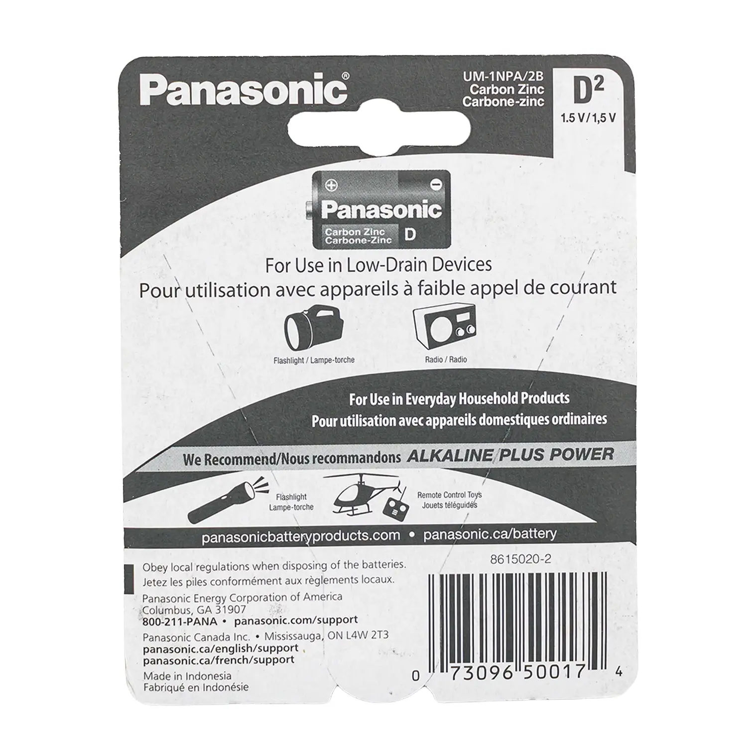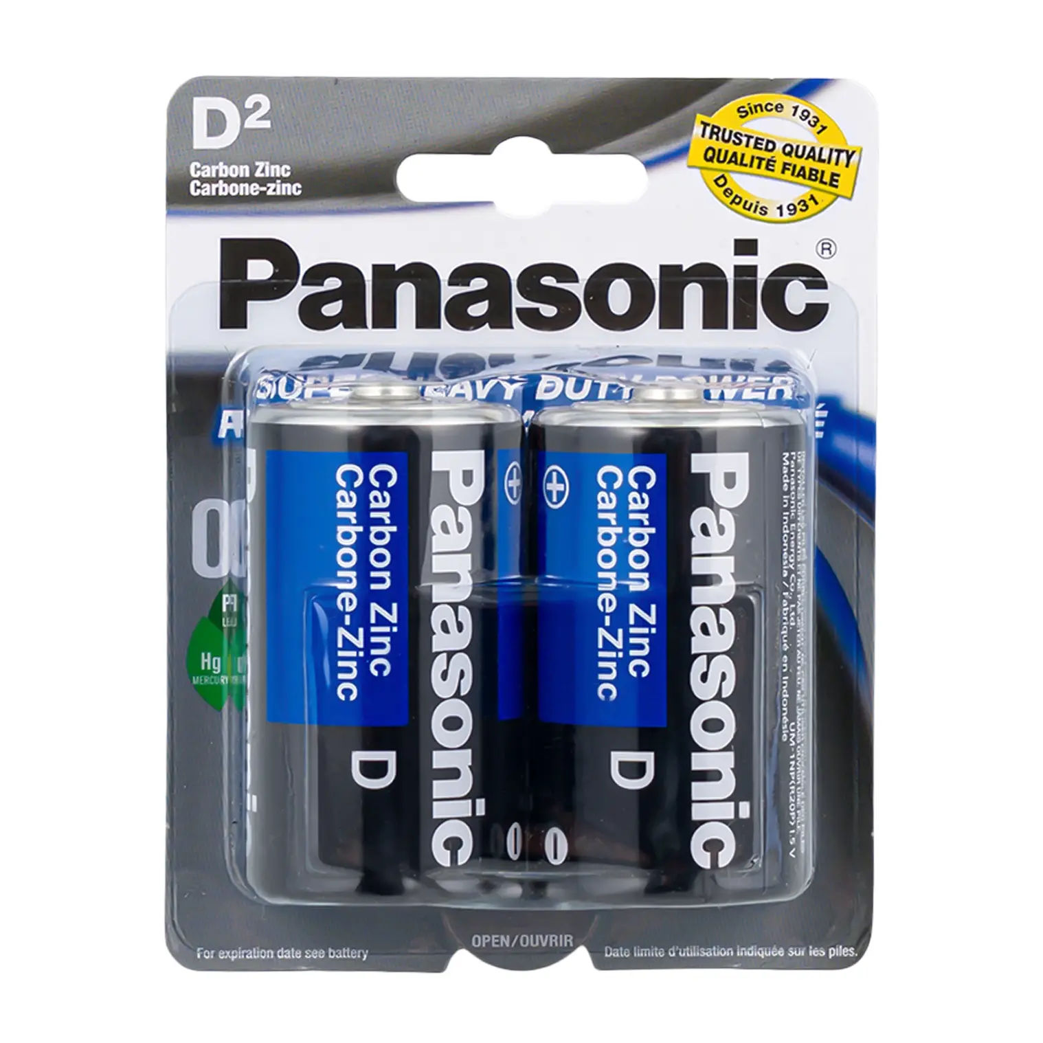 Panasonic D Battery 2-pack is ideal for use in low-drain devices such as flashlights and radios.
