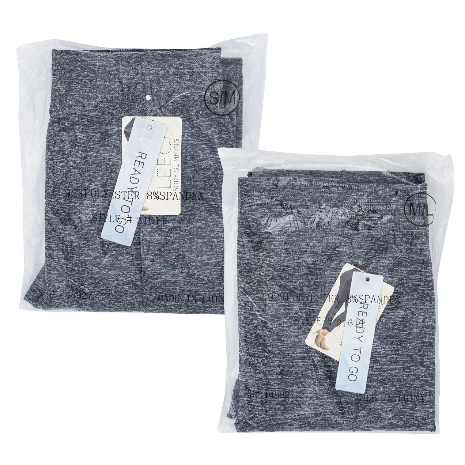 These leggings are comfortable and fashionable. They are made of 92% polyester and 8% spandex. It comes in grey and assorted sizes. Great buy products like these are perfect for your apparel stores.