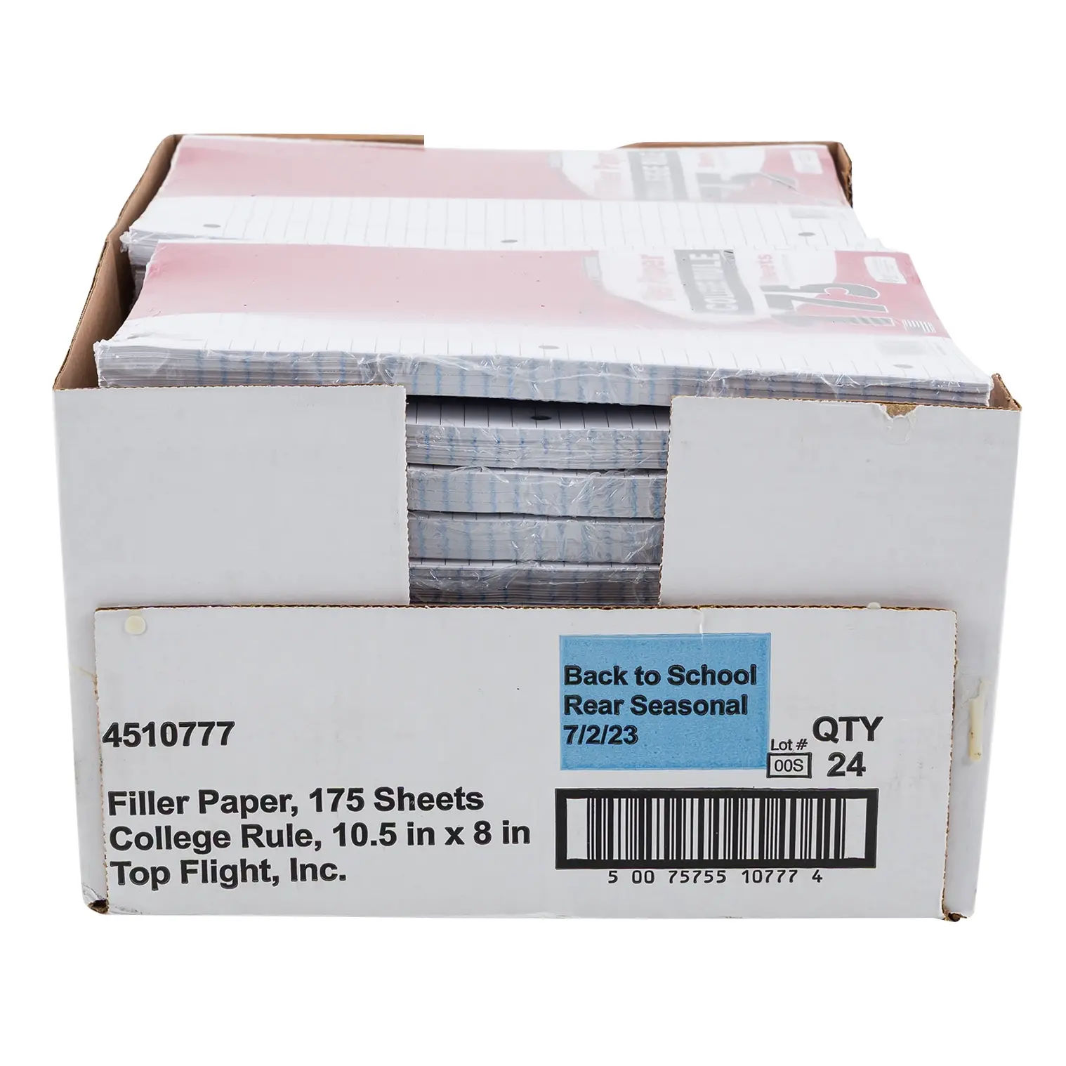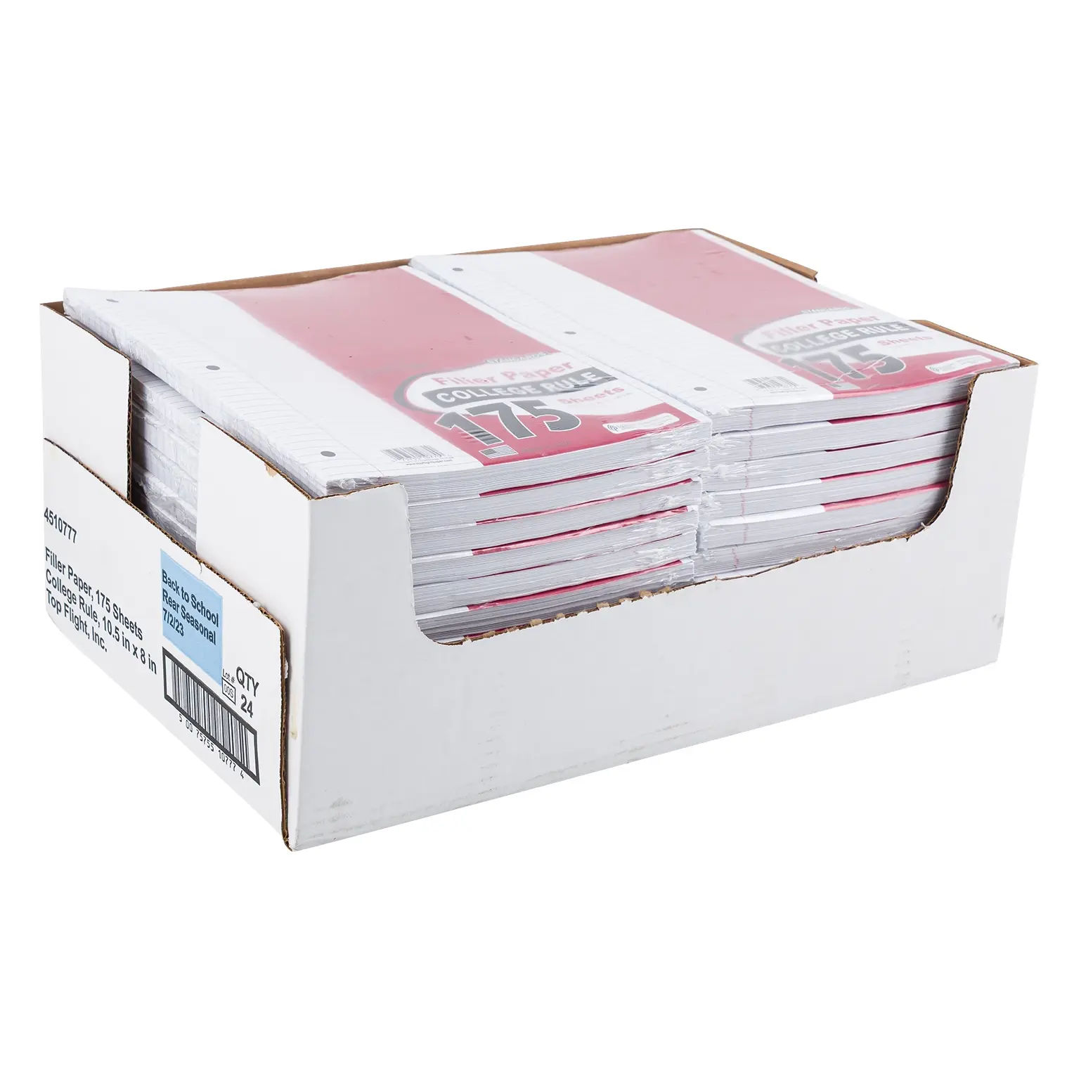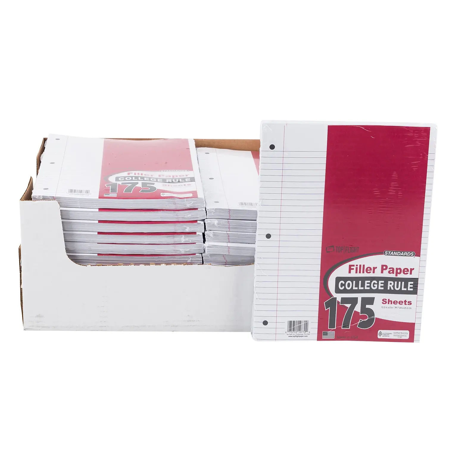 Top Flight College Rule Filler Paper includes 175 sheets of durable, wide-ruled paper, ideal for notes, assignments, or journaling. Fits standard 3-ring binders and is great for school, home, or office use. Perfect for students, professionals, or everyday writing needs.