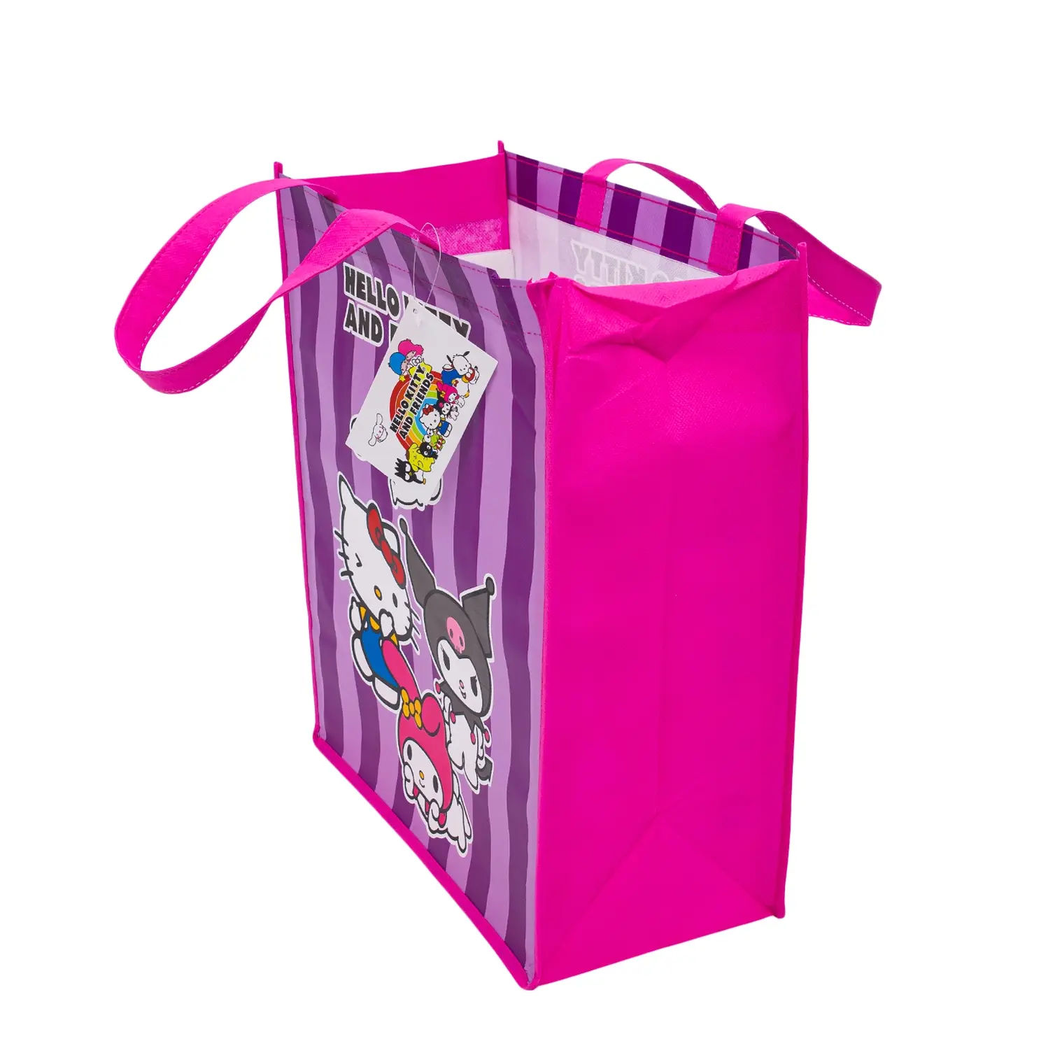 Carry essentials in Hello Kitty style with these 16-inch reusable tote bags. Each bag comes in an assorted design featuring Hello Kitty and her friends. Made from sturdy, eco-friendly materials, they’re perfect for groceries, school, beach trips, or everyday use. Lightweight, durable, and reusable, these totes combine practicality with fandom flair, making them a fun accessory or gift for Hello Kitty fans of all ages.