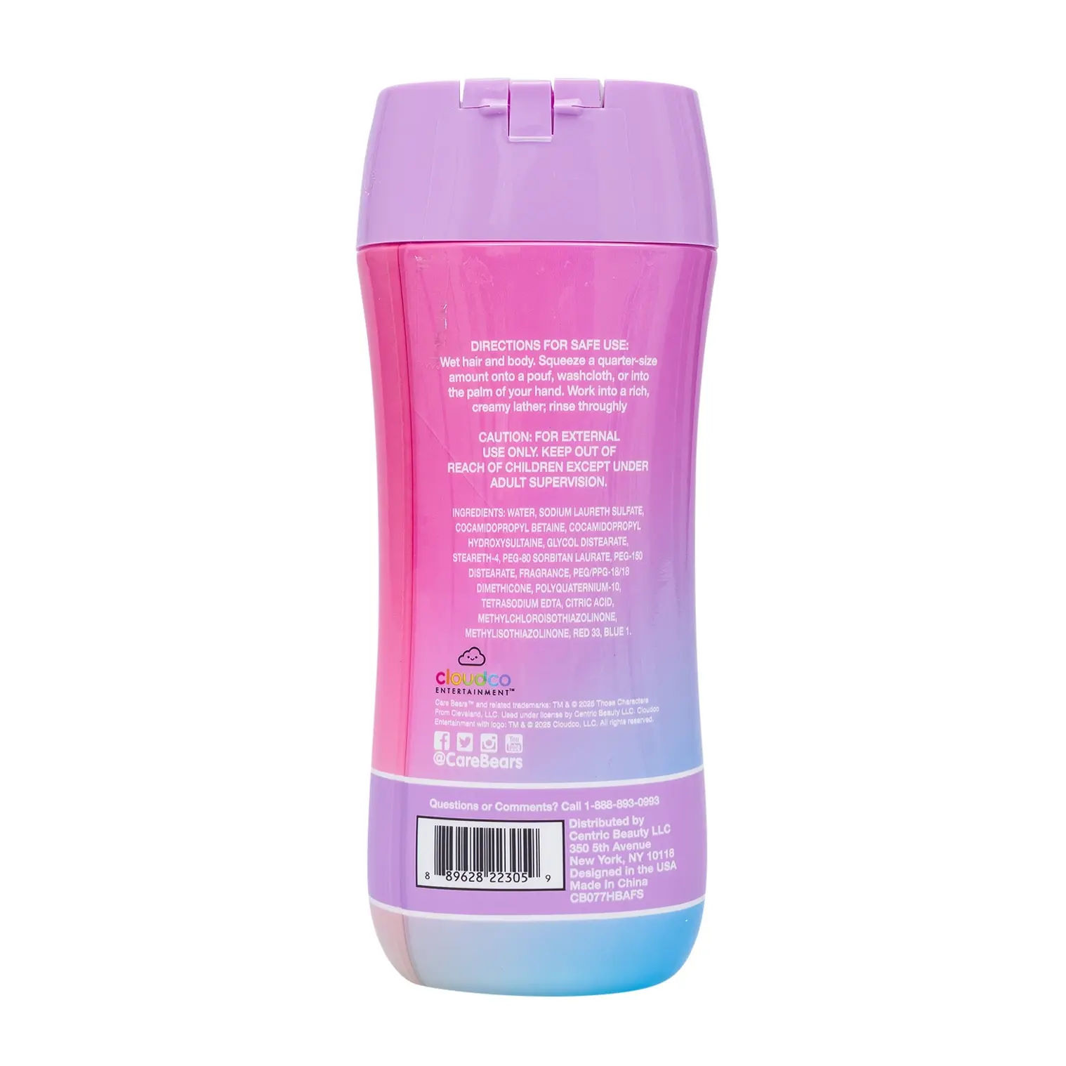 The **Care Bears 3-in-1 Body Wash Shampoo & Conditioner** makes bath time fun and easy! This 8oz bottle with a sweet Cotton Candy scent combines body wash, shampoo, and conditioner in one. Perfect for kids, it cleans and softens skin and hair all at once. A great choice for small businesses like dollar stores and mom-and-pop shops, offering a playful, affordable personal care product that families will love!