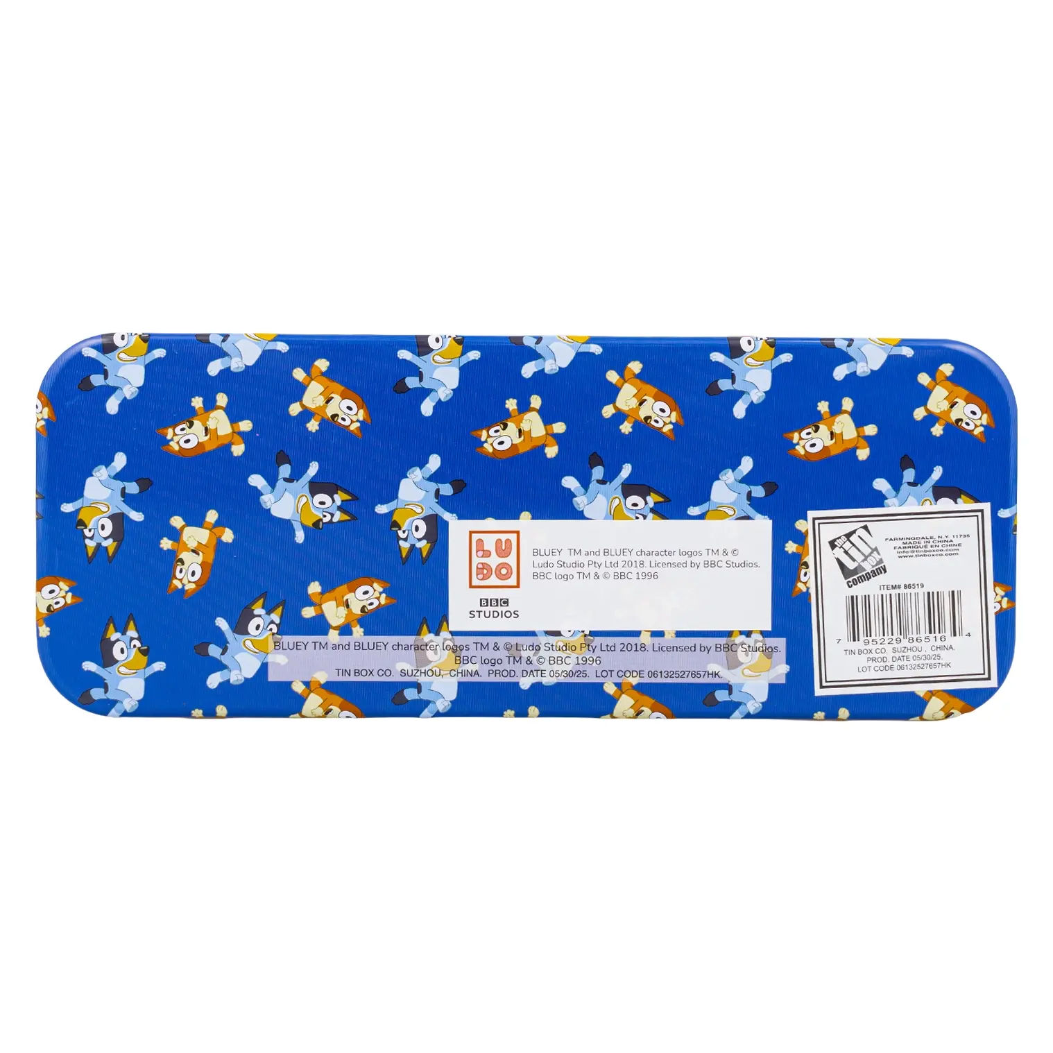 Add playful style to school days with the Bluey Tin Pencil Case 8.5", Assorted. Crafted from sturdy tin metal, this pencil case protects pencils, markers, and small accessories from everyday wear. Featuring assorted Bluey designs, it brings fun and color to backpacks or desks. The slim 8.5-inch size makes it easy to carry for school, travel, or organizing supplies at home.