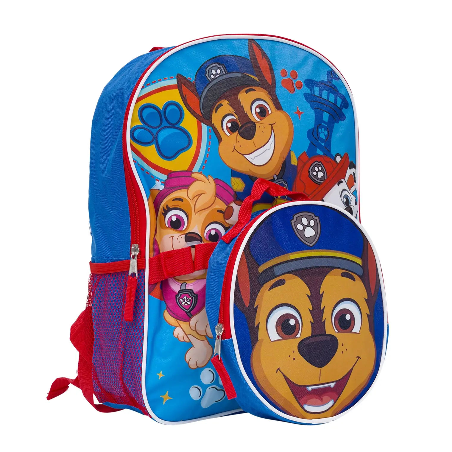 Get ready for school with the Paw Patrol Backpack and Detachable Lunch Kit. This 15-inch backpack features bright Paw Patrol graphics that kids love, along with a spacious main compartment for books, folders, and school supplies. The detachable lunch kit clips on easily for convenient meal storage. Designed for comfort and durability, this backpack set is perfect for school, travel, or everyday adventures.