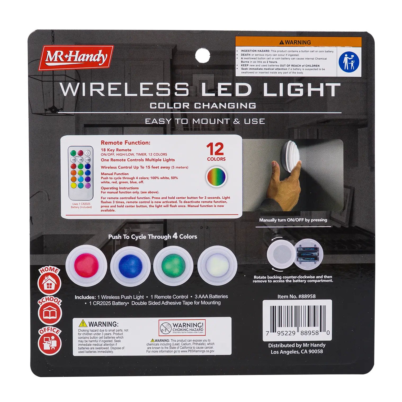 Illuminate your home effortlessly with the Mr. Handy Wireless LED Light with Remote Control. This battery-powered LED light provides bright, energy-efficient lighting without wiring. Perfect for closets, cabinets, stairways, or any area that needs portable illumination. The included remote control allows easy on/off operation from across the room, making it a convenient and versatile lighting solution for any space.