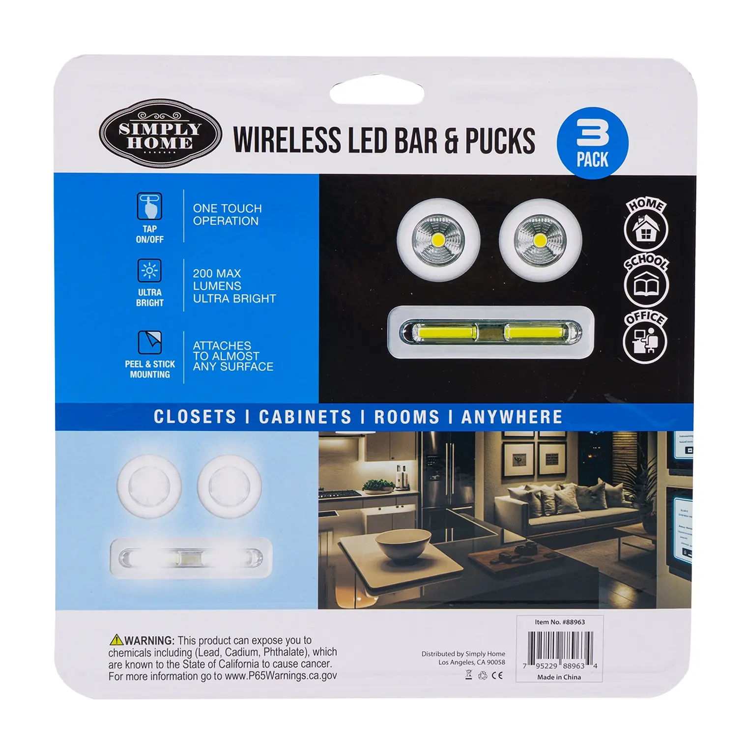 Simply Home Wireless LED Bar & Pucks, 3 Pack, Batteries Included
